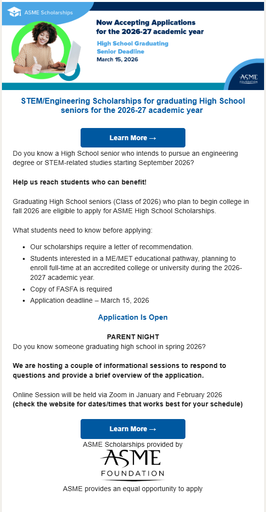 🎓 ASME High School Scholarship Applications Are NOW OPEN! 🎓