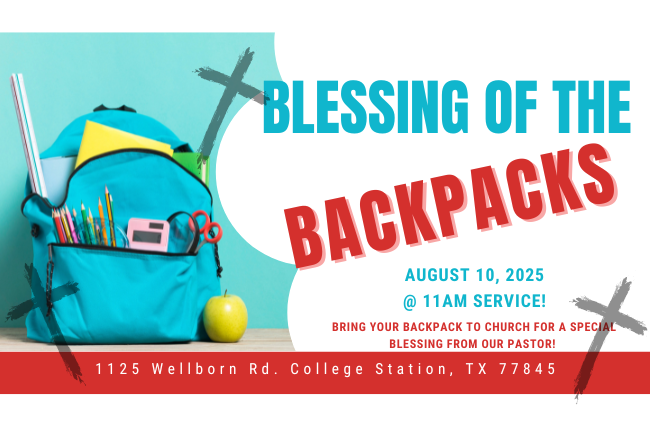 Whether you’re in preschool or pursuing a PhD — bring your backpack, no matter your age, and receive a heartfelt blessing as we head into a new school year.